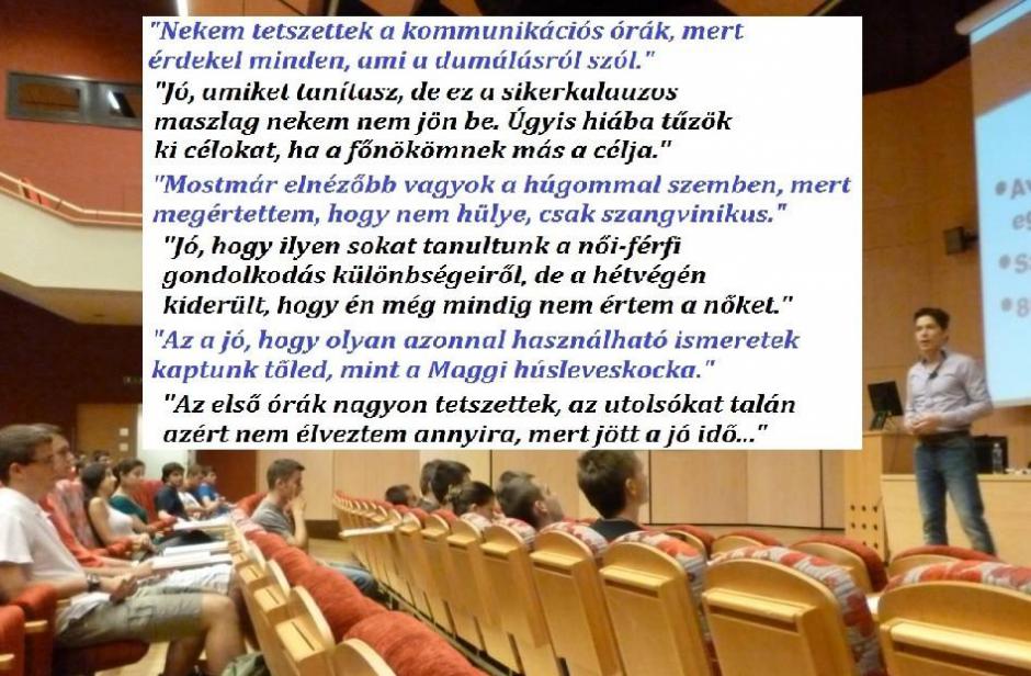 Ha már ilyen nagy sikert aratott az egyetemi karrierem indulását jelző névtábla, akkor mutatok néhány aranyköpést az egykori diákjaimtól. Ez a gyűjtemény szintén a költözés miatt került elő és jól mutatja számomra, miben változtam és miben nem 15 év alatt.Nekem tetszettek a kommunikációs órák, mert érdekel minden, ami a dumálásról szól.Jó, amiket tanítasz, de ez a sikerkalauzos maszlag nekem nem jön be. -